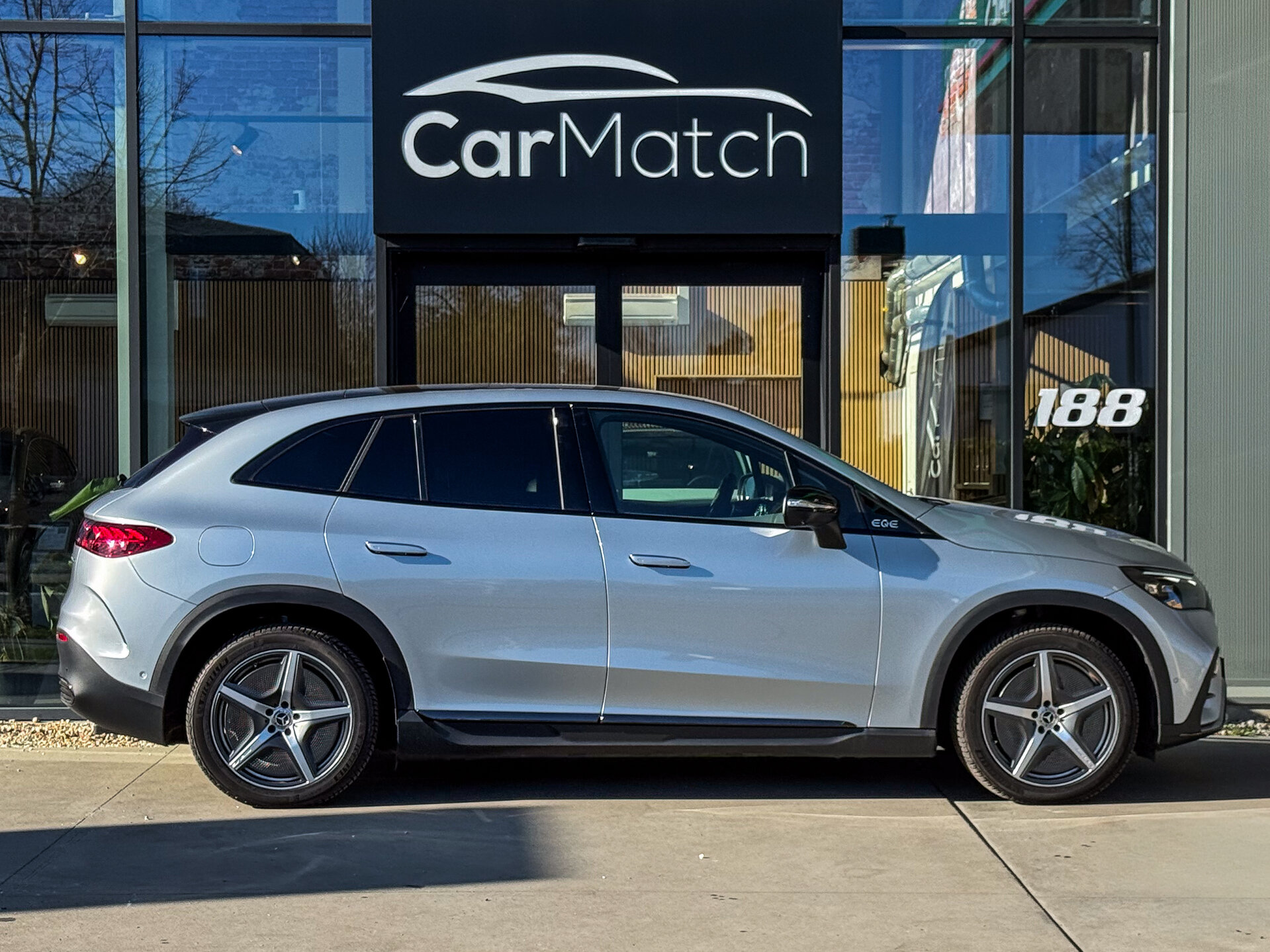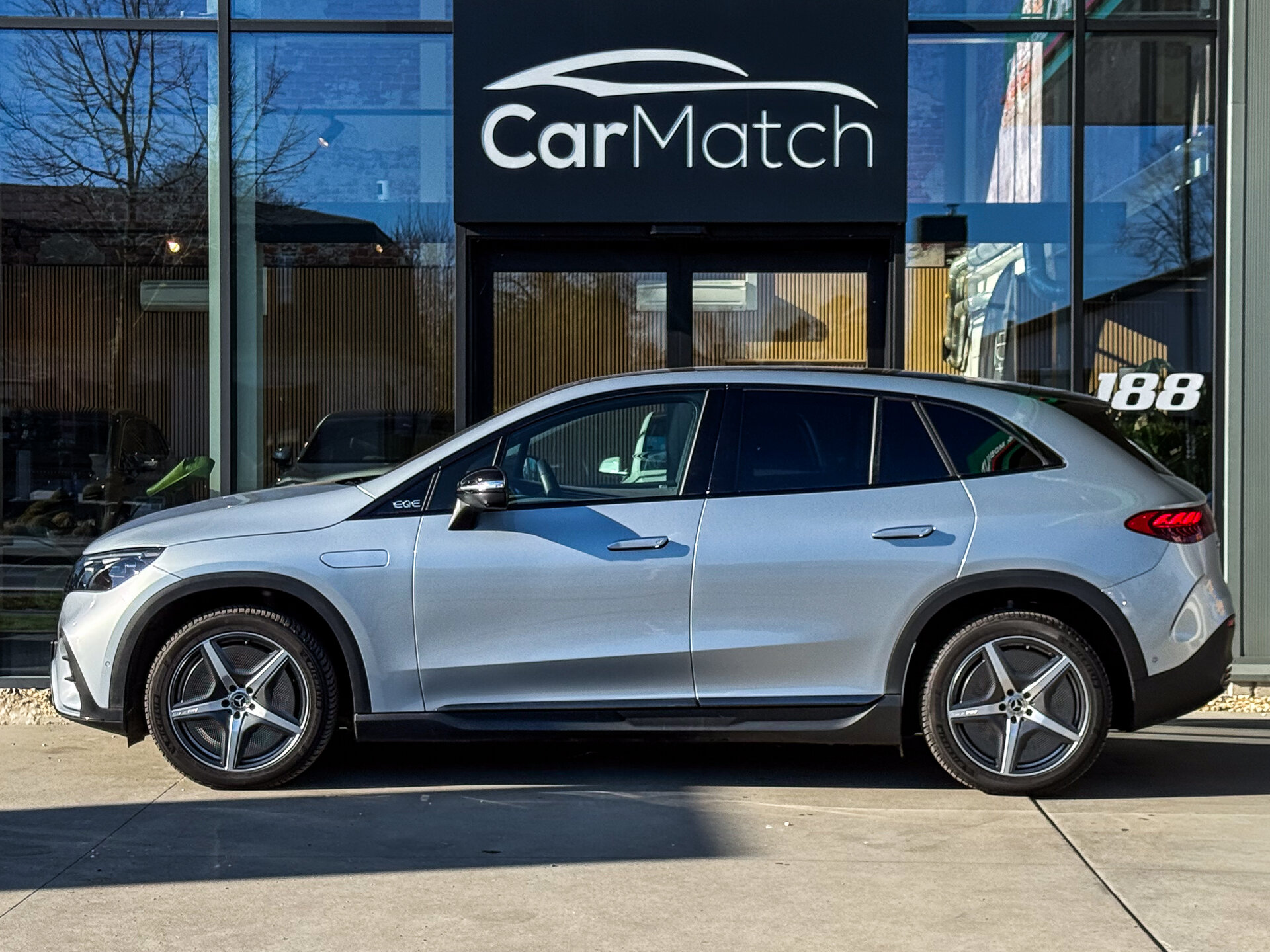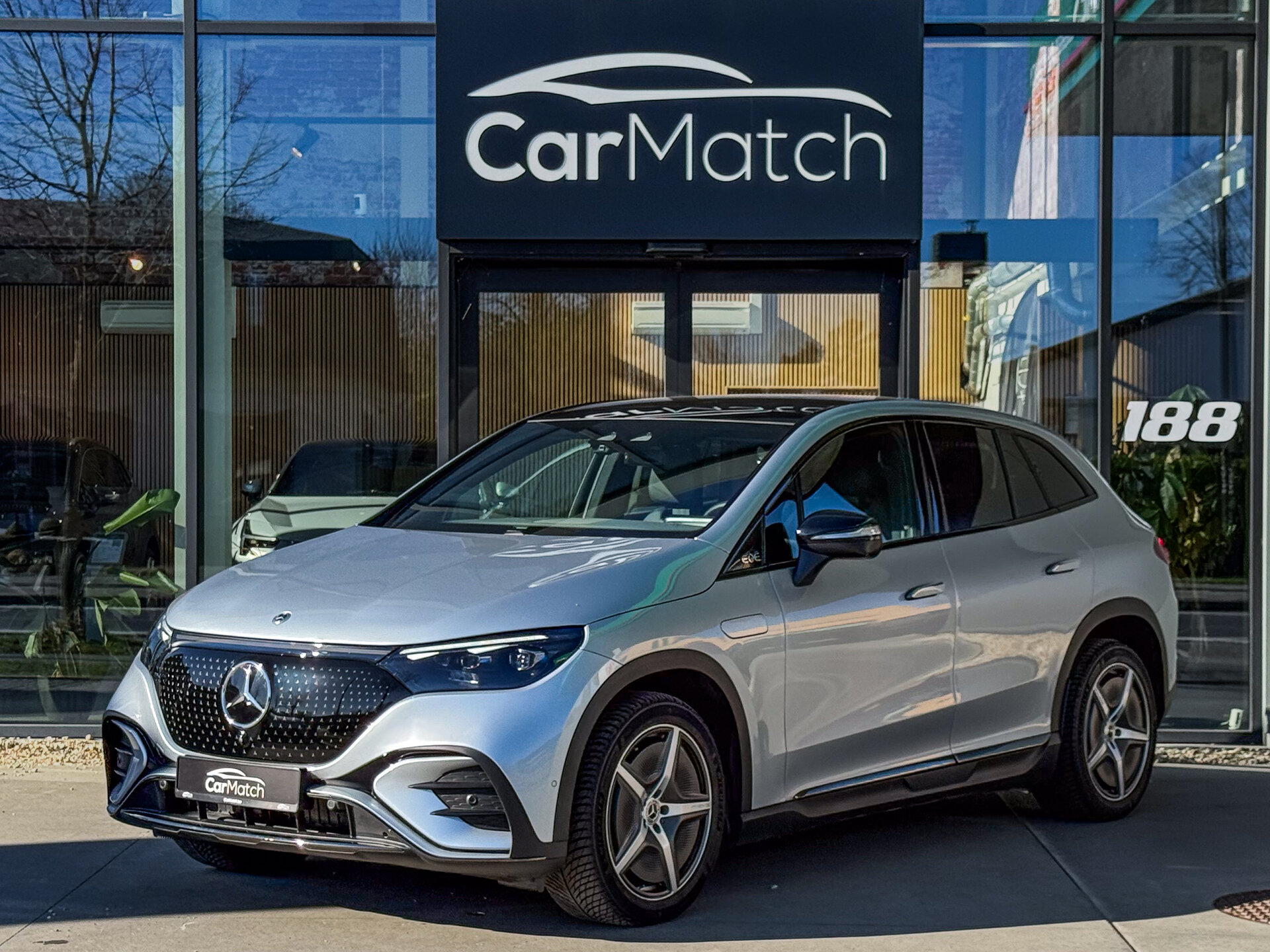 CarMatch biedt u deze prachtige Mercedes EQE SUV 350+ 4MATIC uitgevoerd in Hightech zilver Metallic aan in perfecte staat!