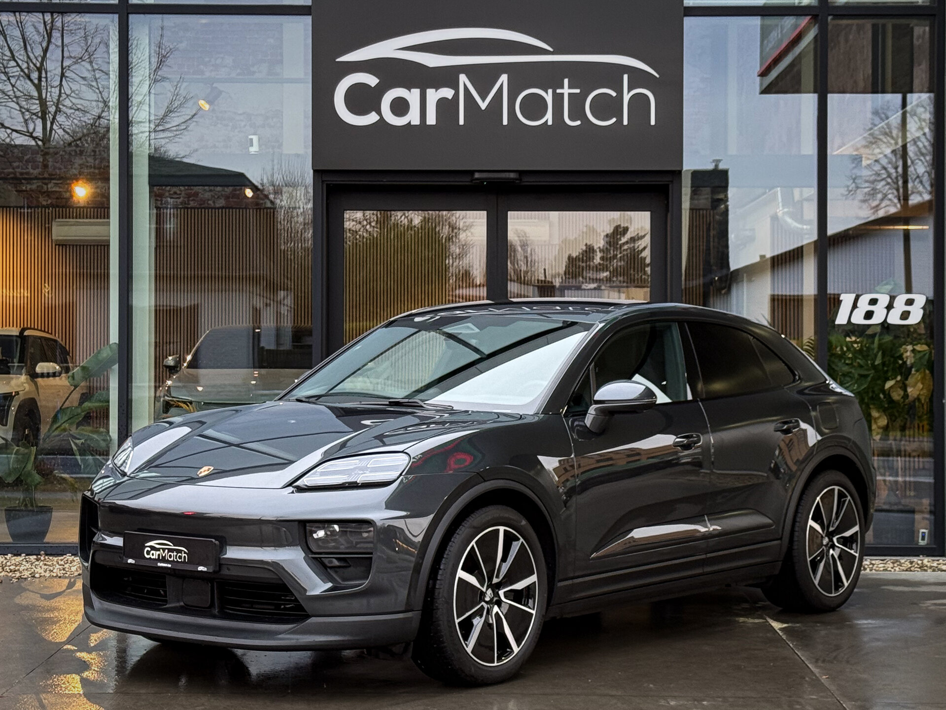 CarMatch biedt u deze prachtige Porsche Macan Electric in Volcano Grey Metallic aan in topstaat.